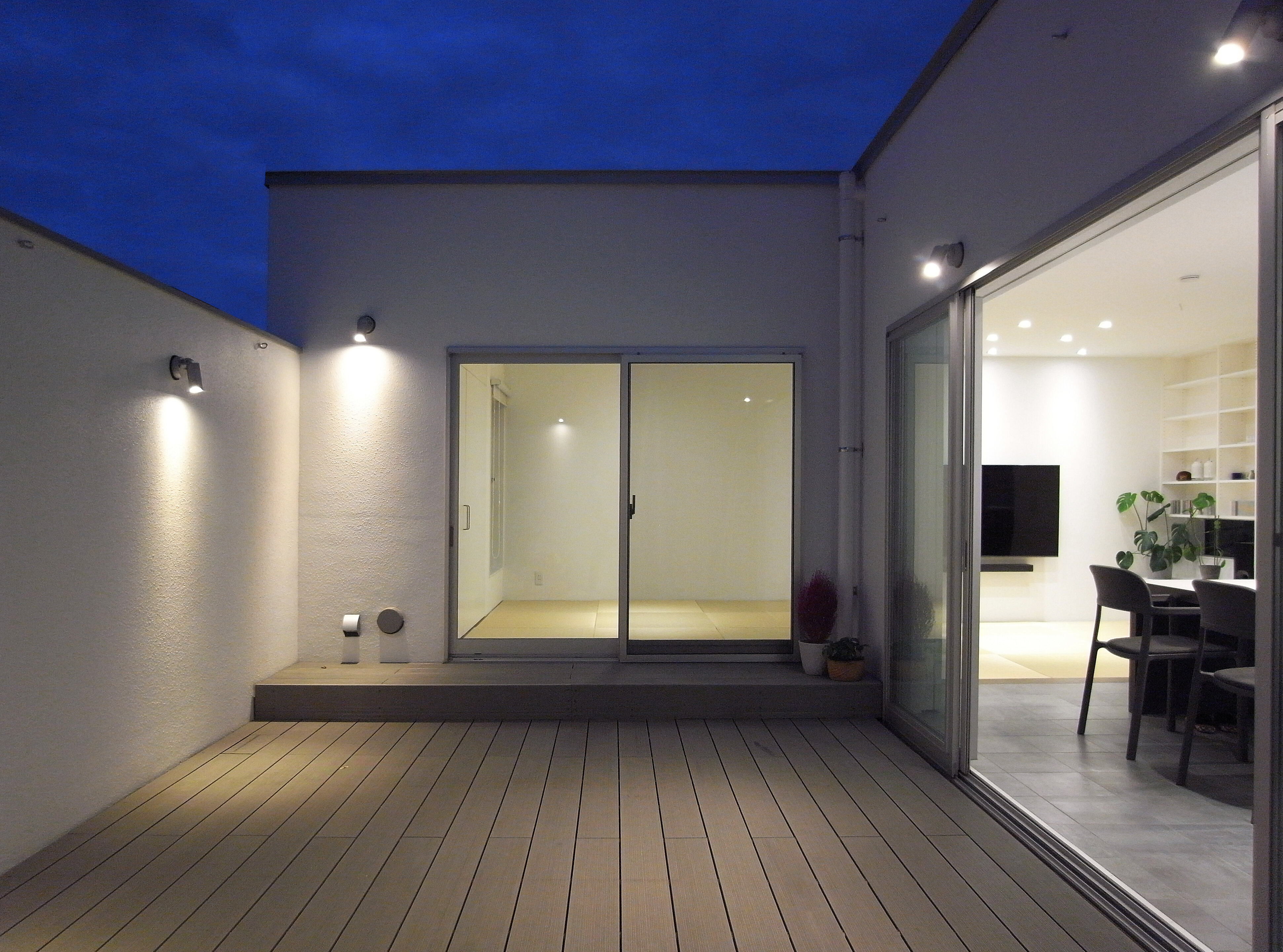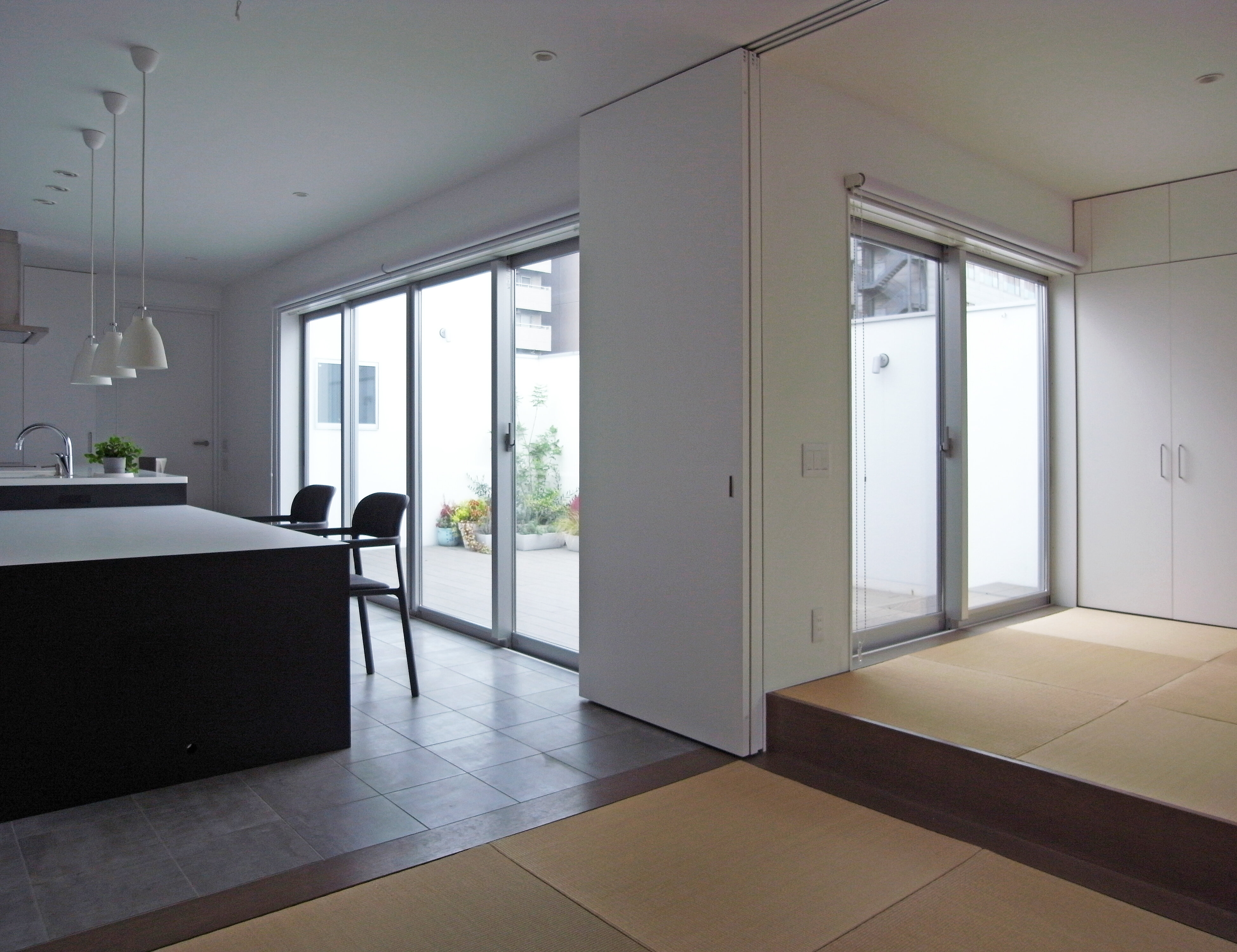 住宅部分については、多くの書籍を納める仕事部屋やレッスン室といったプラスの用途に加え、今までのお住まいにあった問題点を改善して、気持ち良く住めるように、明るく風の抜けるリビング、プライバシーのある広いテラス、ご高齢のお母さまに対する配慮、調理や洗濯・乾燥・外干しといった家事動線の短縮等、これらが主な計画のテーマとなりました。