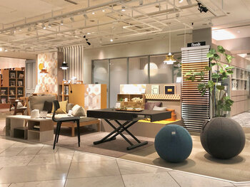 3Fインテリアデザインスタジオ前で、「new normal あたらしい家時間」をテーマに、コーディネート展示をしています。(2020年10月に終了しました)